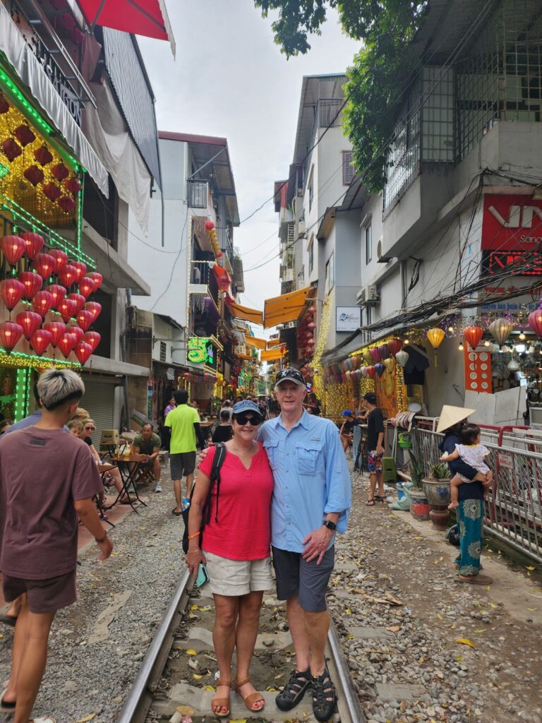 Hanoi Train Street is a narrow street where trains pass just inches from homes and cafes. It’s a popular spot for tourists to take photos and enjoy coffee while waiting for the train, showcasing the vibrant and unique street life of Hanoi.
